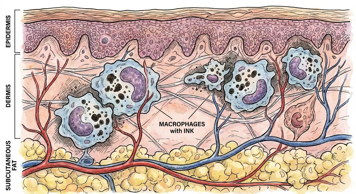 Weird fact: tattoo ink doesn’t even live in your skin cells. It’s held by your immune system’s macrophages. Forever. Which is kind of perfect for brain tattoos, right? You’re embedding psychological truths into your body’s protective systems.